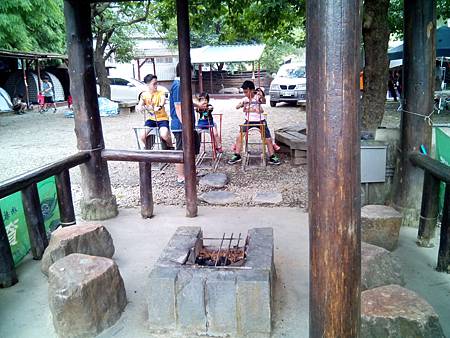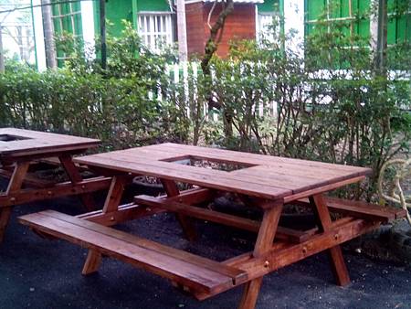目前有看到兩組烤肉桌,到時候再來借去自家小木屋前使用