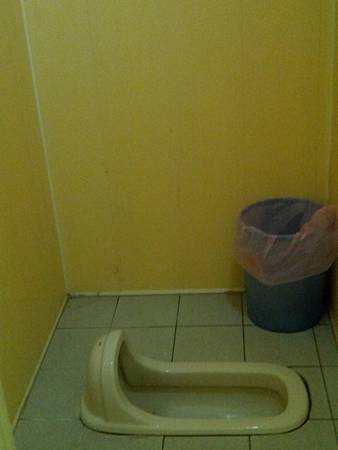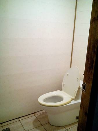 結果男生小便桶等於半開放式耶,在一扇遮不住的木門後方