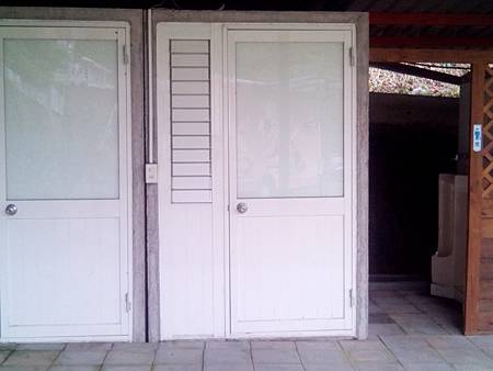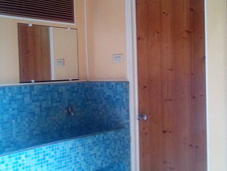 水池邊的衛浴間,在入口處也貼心設一木門,阻隔了許多蚊營飛入共浴的情形,真讚。