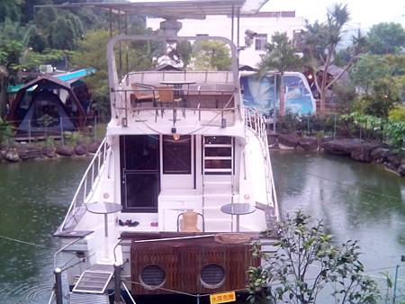 哈哈,勝豐農場原來就在吾家農場一號營區正對面。本來是在網路上被他的哈比屋和遊艇好像還不錯,結果一到營區,看到它營地是設在很斜的水泥坡地上,加上遊艇是停在一個很小的池塘裡,還有當時在有棚區,卡拉ok區有人正在高歌一曲哇~~!!