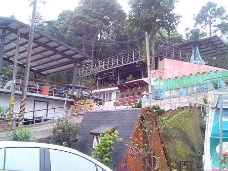 露營木屋抬頭看第二層,要開上很斜很斜的斜坡才能抵達,此區只能搭個3~4帳吧!!
