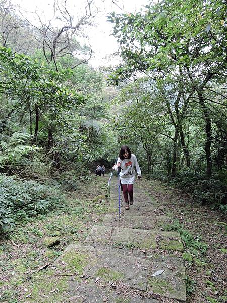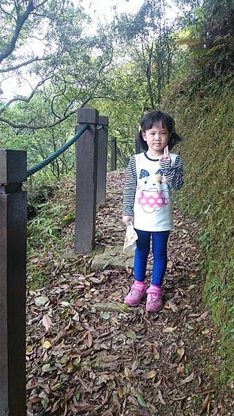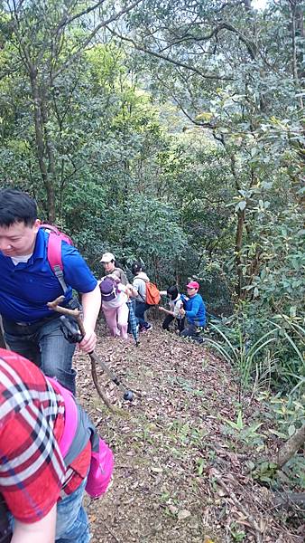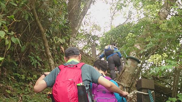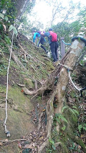 這是爬上70度斜坡後,一小段也需扶繩的路