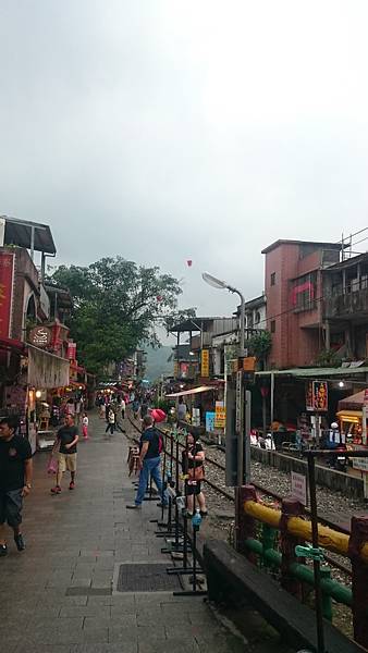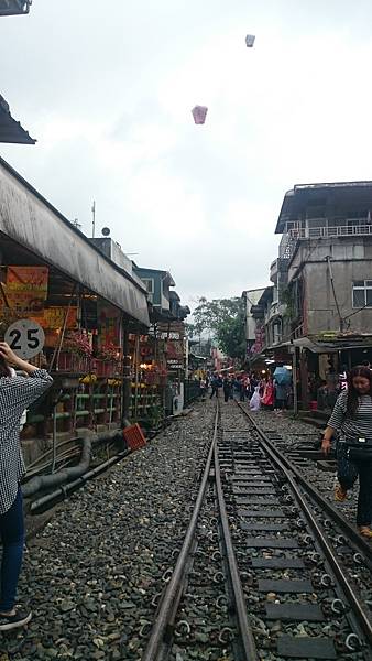 離去前正在飄雨,但好像不減外國觀光客放天燈興緻,真是美麗的十分寮古城。