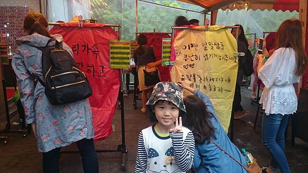 今天下午飄著雨,還是好多人放天燈,原來都是外國觀光客,因為清一色韓文、日文和簡體字