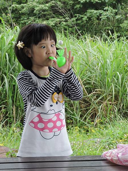 小貝貝表演拿手絕活娛樂大家"鬥雞眼吹球"
